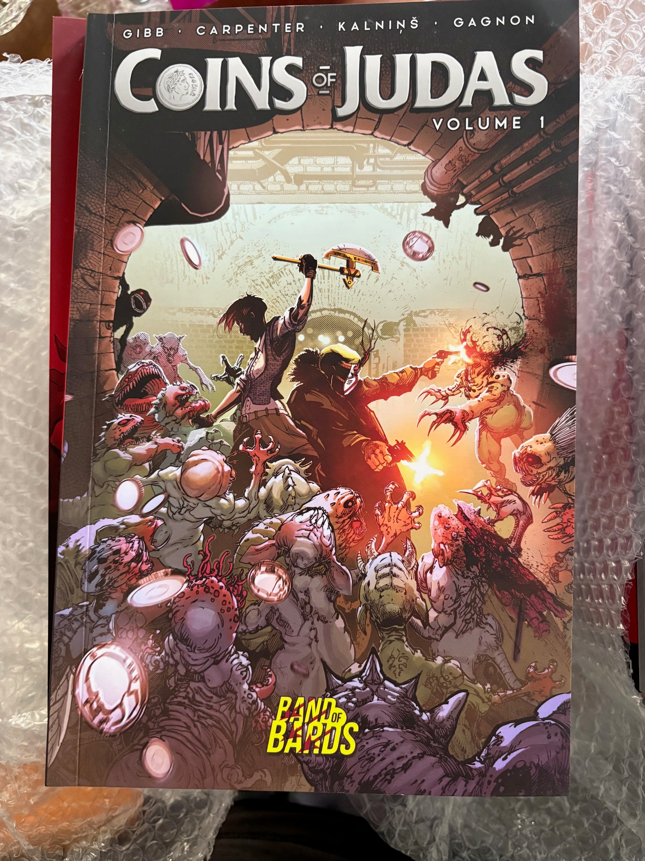 A Special Edition collection of the first two arcs of COINS OF JUDAS, from Travis Gibb, Tyler Carpenter, Rolands Kalnins, and Jerome Gagnon!