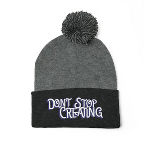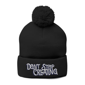 Don't Stop Creating Pom-Pom Knit Cap, Embroidered